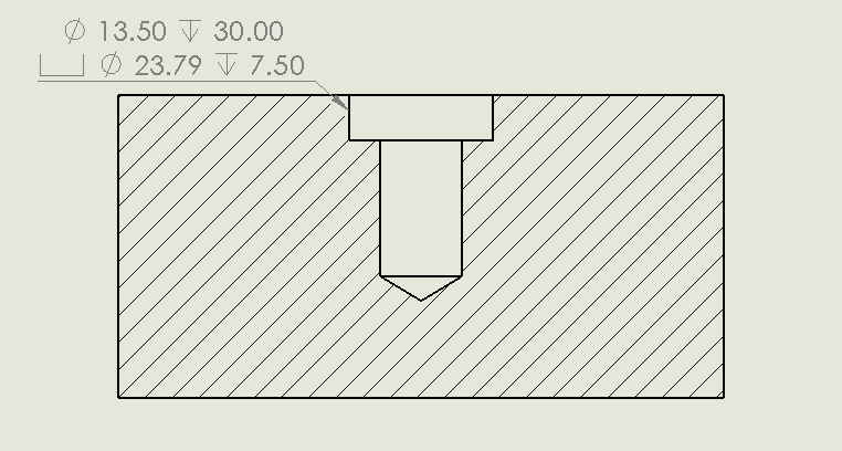 The conical hole diameter of a countersink is designed to accommodate the head of a screw or fastener. Therefore, this hole is only used when a countersink hole is required. Like counterbore holes, countersinks allow the rivets or threaded fasteners to sit below the surface. They have a pilot hole diameter with a shank width that dictates appropriate fitting.