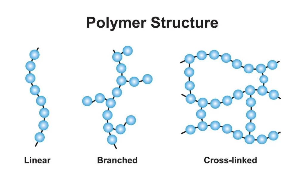 • Polymer architecture: Linear, branched, or cross-linked networks determine melt flow and rigidity.
