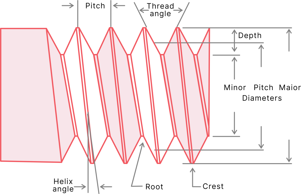 Thread angle refers to the angle between the flanks of the thread. This crucial component is a defining factor for the engagement and tightness of the threads.